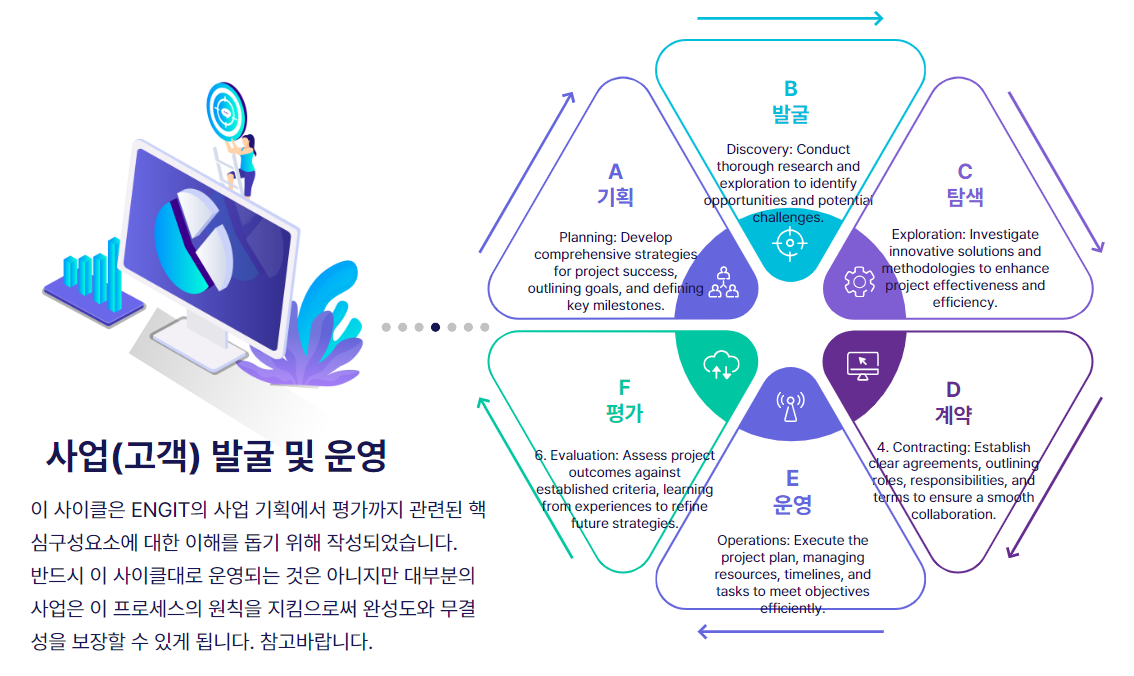 저희는 25년이상 정부부처, 공공기관, 금융기관, 대기업 등을 상대로 각종 입찰 및 발주사업, ISP, 정보화사업, 감리수행등의 다양한 컨설팅 및 실무수행 전문가로 구성되어 실제 경험기반의 컨설팅을 하고 있습니다.